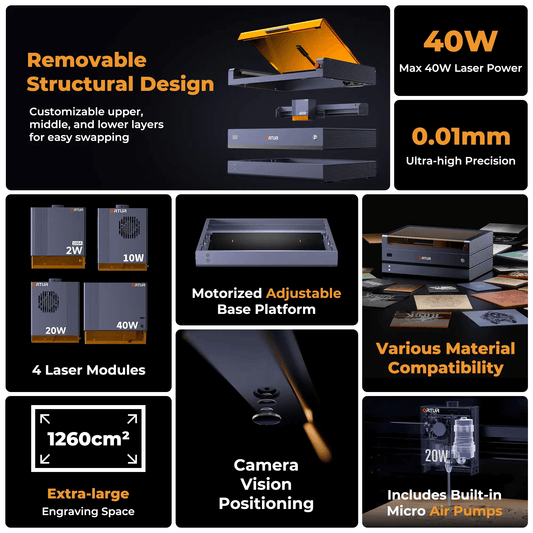 ✨ Tu potencial de grabado escala con la elección de tu módulo láser.